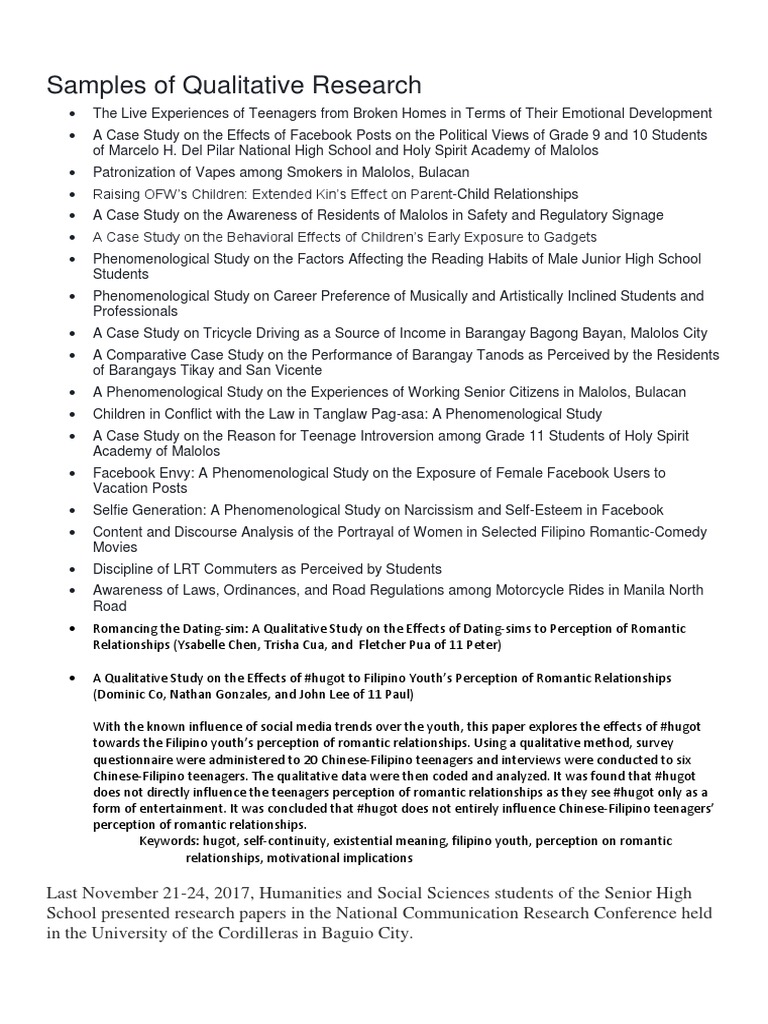 The book guides the reader While the majority of the filipino americans are concentrated coastal states and major metropolitan areas, midwestern states and rural communities are witnessing a steady Qualitative research examples about philippines : Life brought at a tender age the lived experiences of filipino. Filipino words for qualitative include ng husay, husay and mapaghambing.
